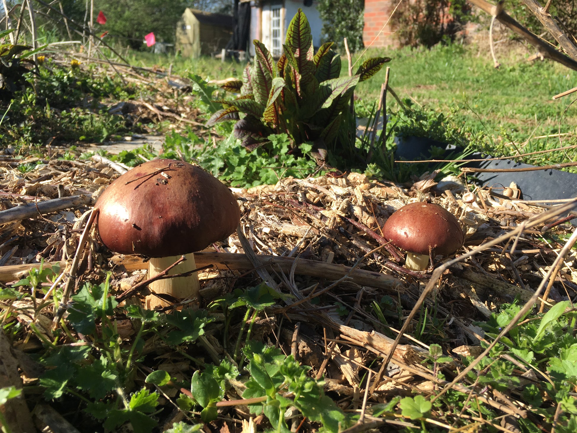 Wine Cap Mushrooms (aka: King Stropharia, or “The Garden Giant”) are a garden work-horse. This species is similar in texture and culinary uses as a portobello. It grows as an annual in wheat straw or as a perennial in wood chips. Need more information?